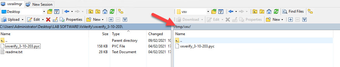 Upload the ‘.pyc’ file to the newly created directory (in this example I am leveraging ‘winscp’ to perform the upload to VxRail manager):