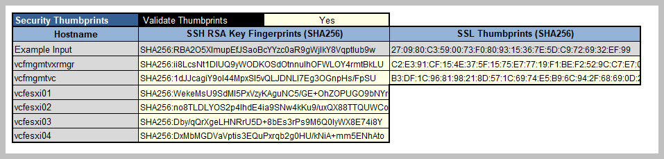 ESXi Hosts SSH Fingerprints (Ensure the SSH Service has been started on each ESXi host):