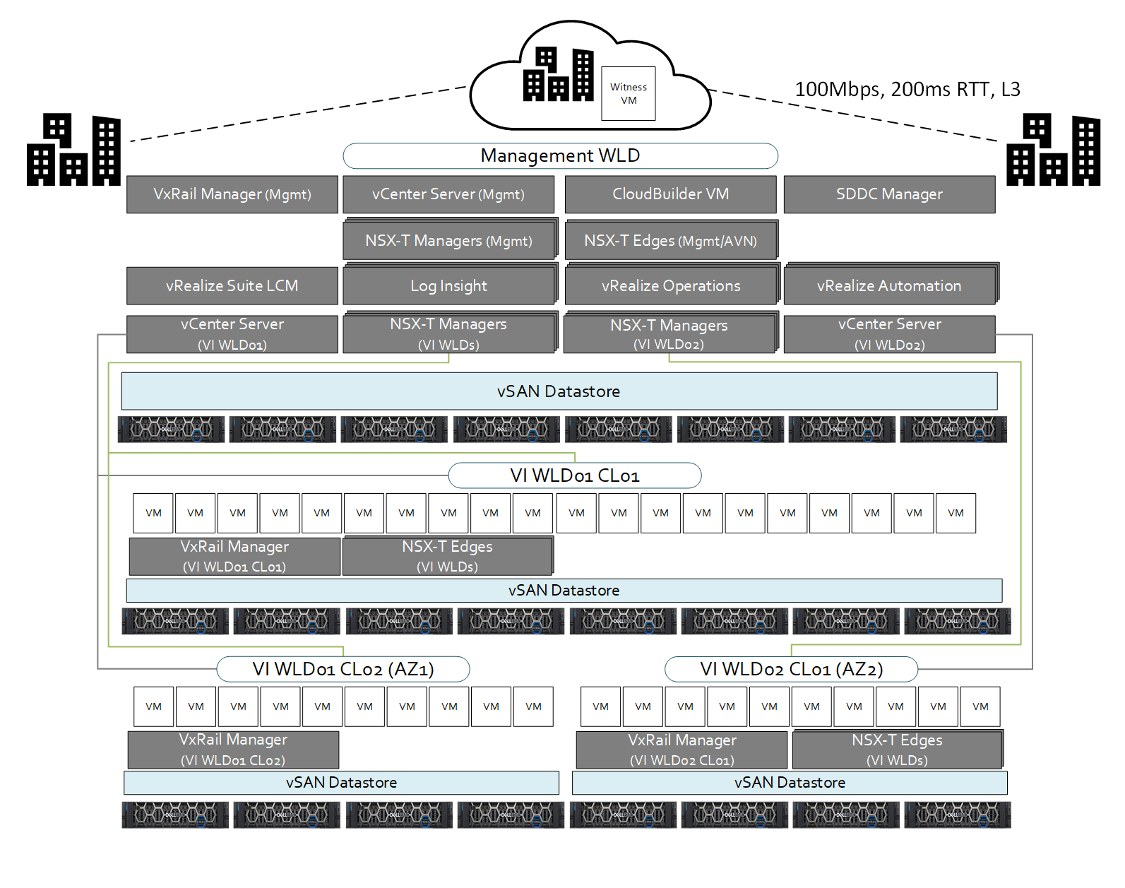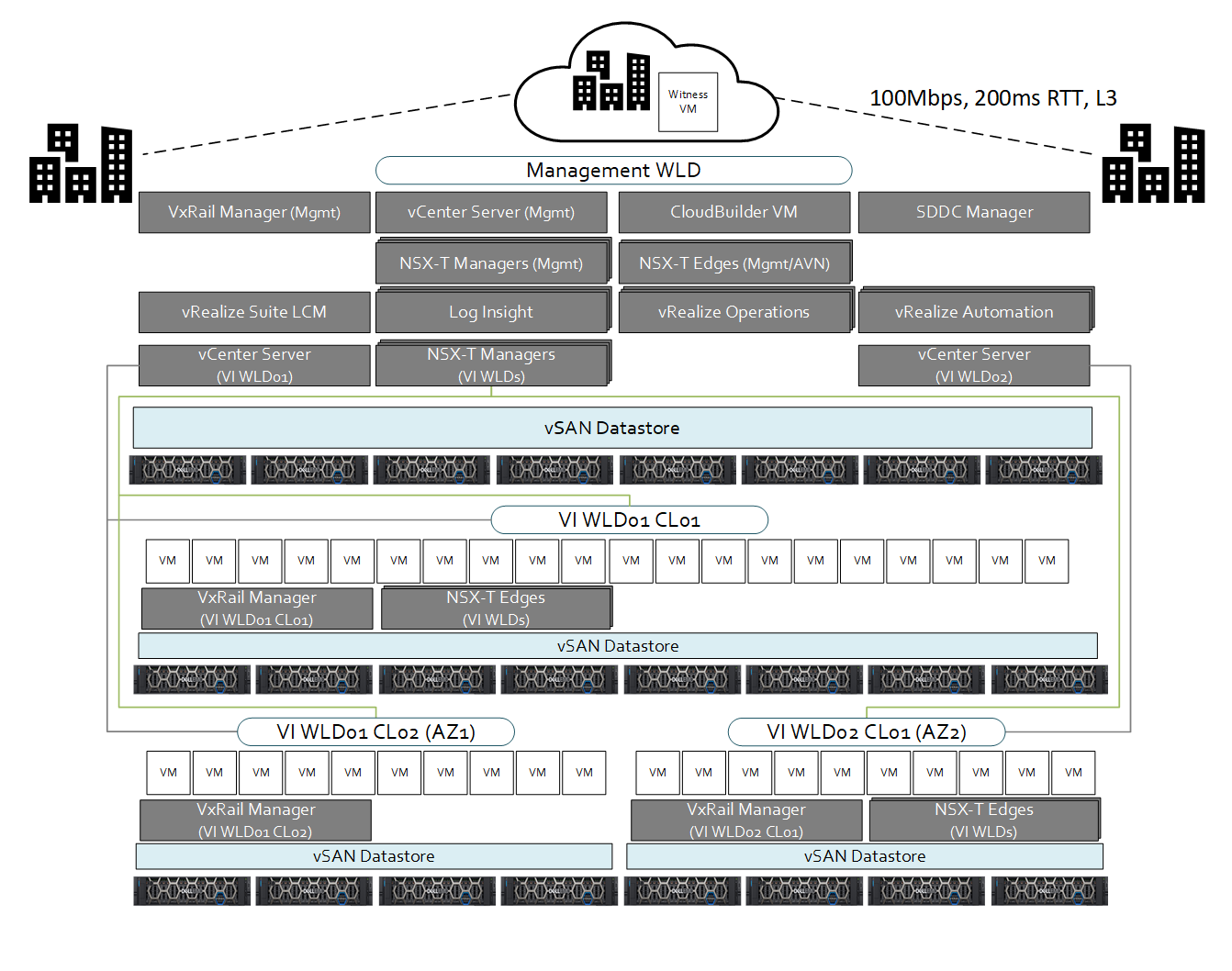 Note that for all VCF on VxRail Multi-AZ architectures, the Management WLD MUST be stretched.