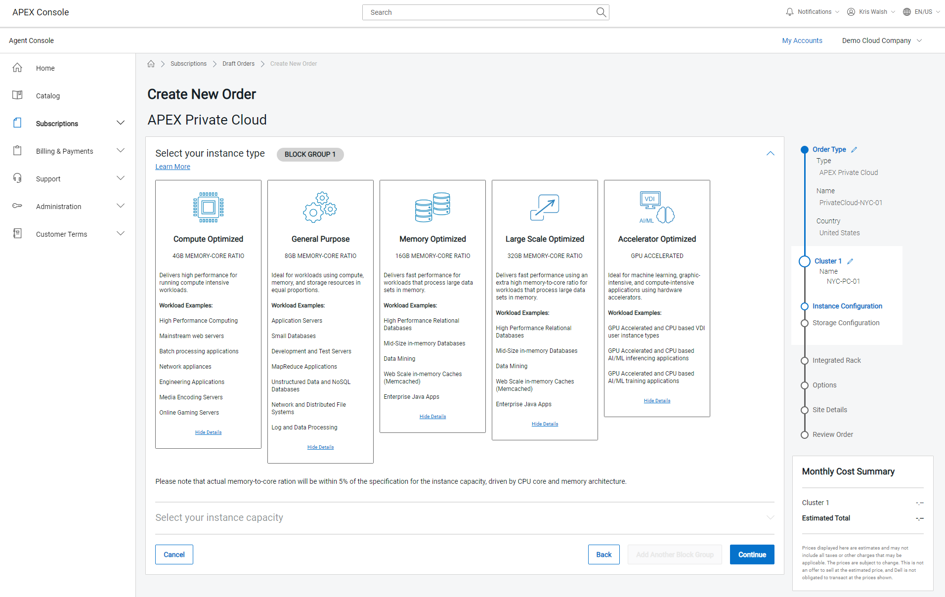 - There are a number of tools to assist you, but the beauty of APEX is that once you define your workloads and the performance required, choosing your hardware template from the catalog is simple.