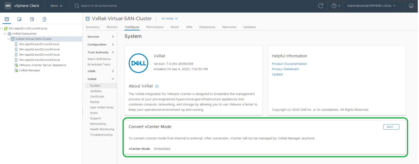 Do note that you should have a vCenter license ready before doing a conversion. Once converted to a customer vCenter, we won’t be able to convert it back a VxRail provided vCenter.