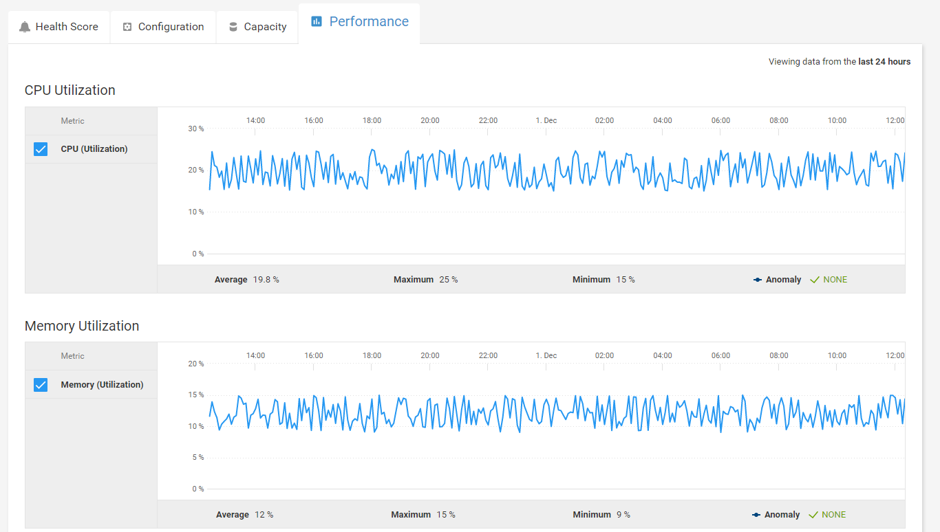 5. Metric Charting – with advanced health reporting, we can view and pinpoint any areas around CPU, Memory, Capacity and Networking resources.