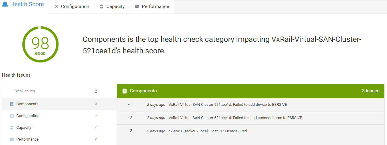 2. Simplified Heath Score – This identifies and assesses the impact of health issues now and the future, at both the cluster level and node level, so you pinpoint any problem areas. With machine learning, it can learn behavior patterns and more accurately identify any anomalies that may cause potential issues.