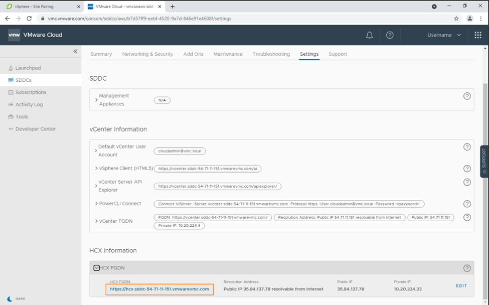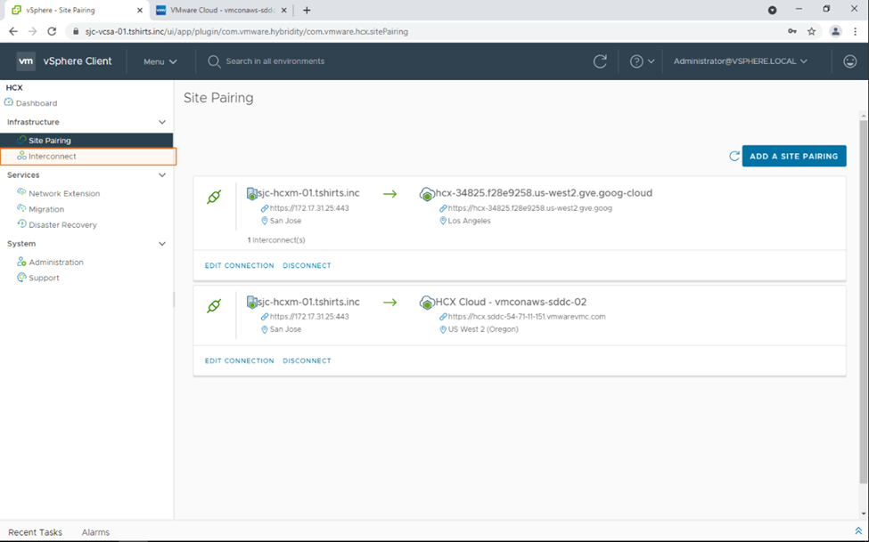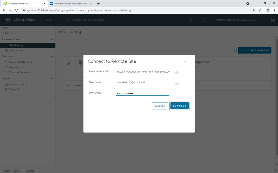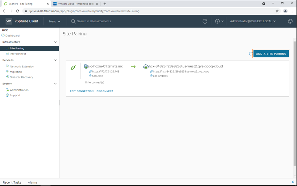 5. We can now go ahead and create a site pairing between our on-premises implementation and VMware Cloud on AWS.