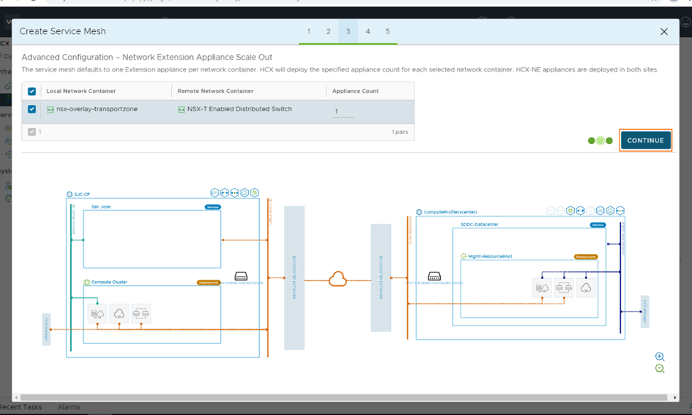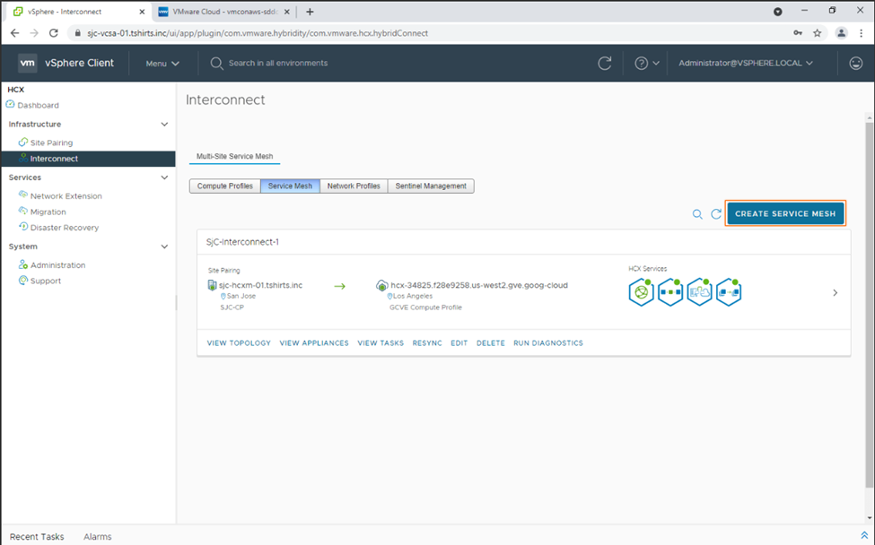 6. After the sites are paired, we can create a service mesh to allow for vMotion between sites.