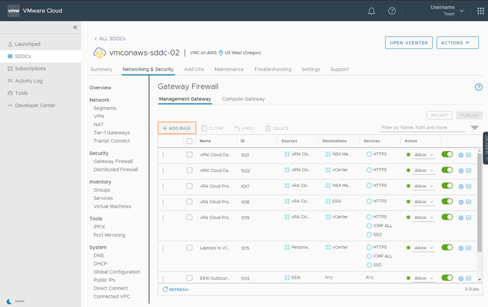 - HCX is natively integrated into VMware Cloud on AWS. First, we need to activate HCX in the cloud console and allow inbound HCX traffic.