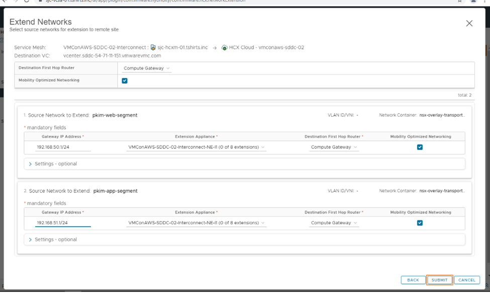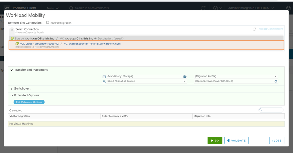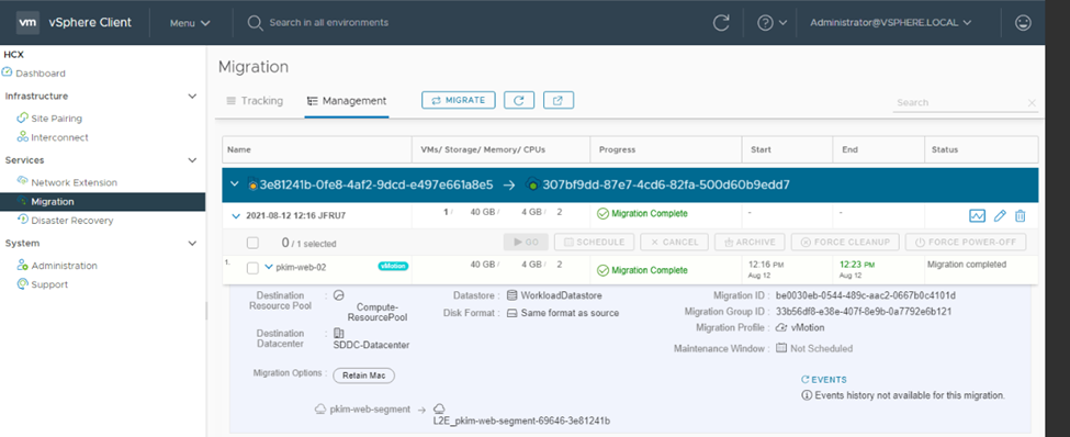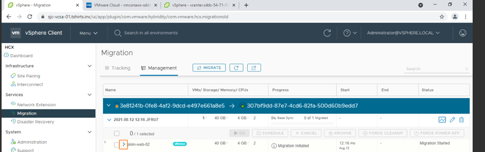 8. After the network extension is established, we can initiate the migration using the HCX dashboard.