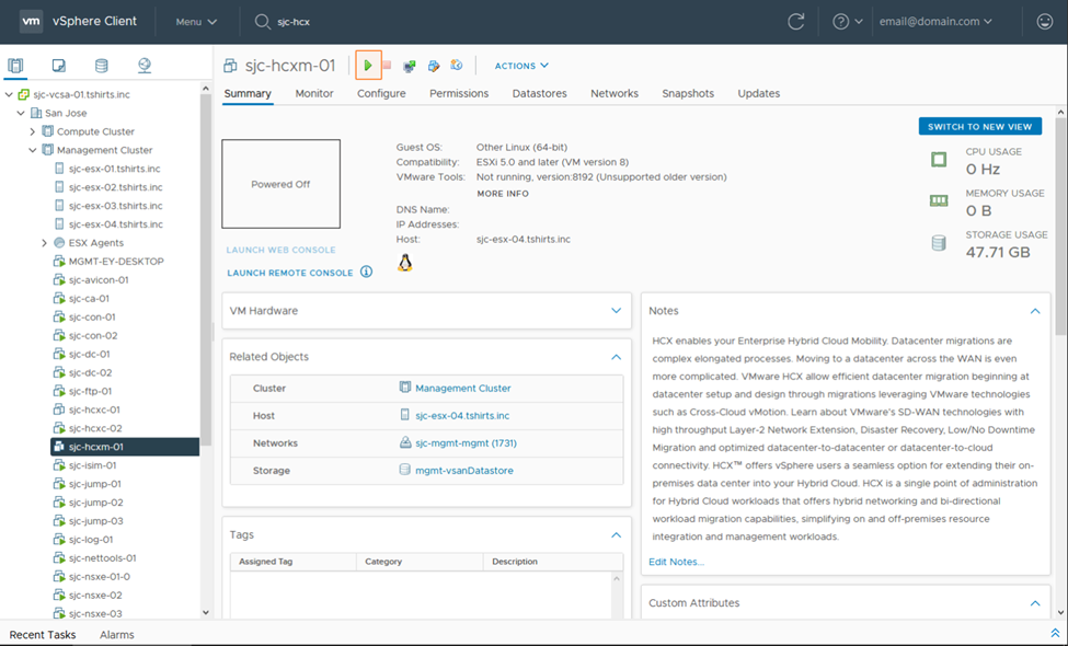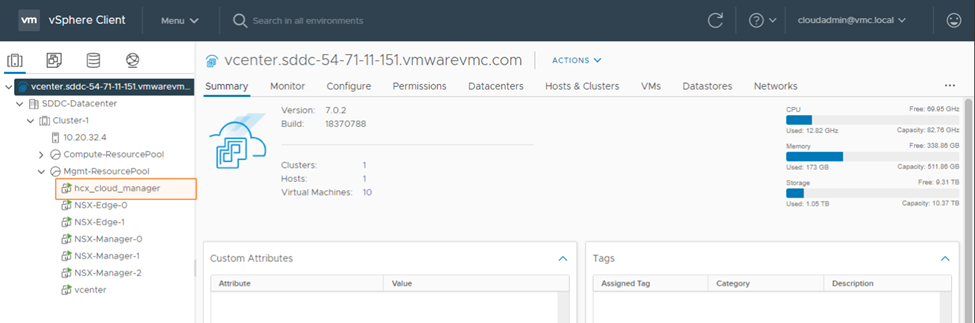 In the following example we are going to setup HCX for VMware Cloud on AWS and perform a live migration of a VM from on-premises to the public cloud.