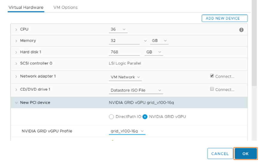- After the driver installation is completed, we can add the GPU device to a VM and assign the respective vGPU profile.