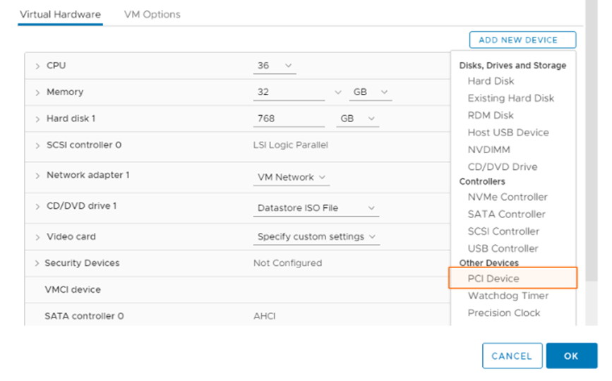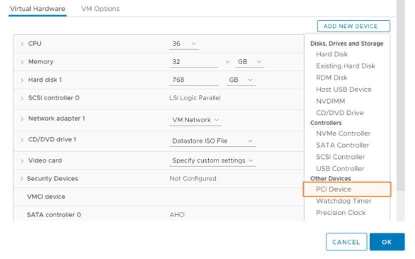 - Assign GPU via DirectPath IO or Dynamic DirectPath (if same GPU is present in other hosts)