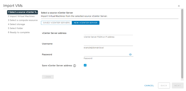 This migration process can also be triggered from the old vCenter, the process is slightly different.