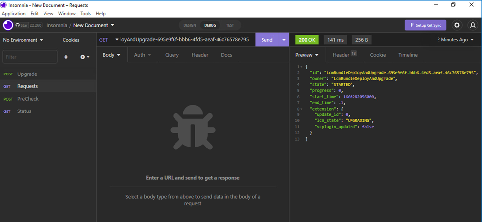I’m using the REST client “Insomnia” in this example, a lightweight client I personally like but any REST client can obviously be used.