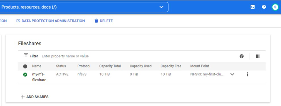 - Once the cluster is fully configured, we can proceed and create our fileshares.