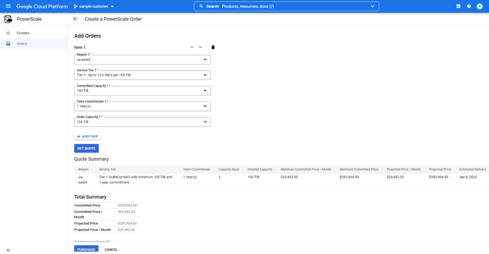 In the following sections we will review the ordering and configuration steps from the GCP GUI in more detail.