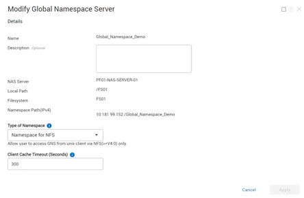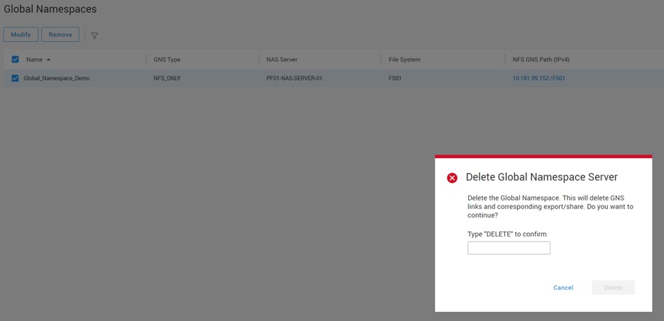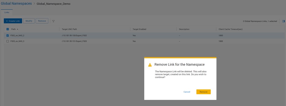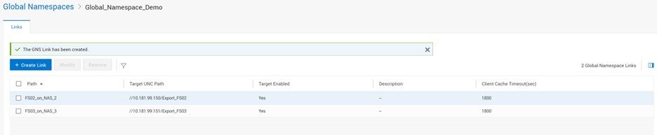 14. If there is any changes, the storage admin can always modify the link to the global namespace by clicking on modify.
