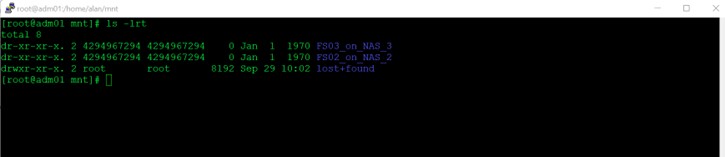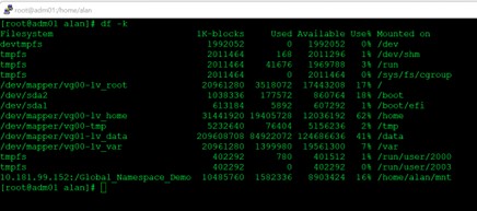 13. Once the 2 file systems are linked to the Global namespace demo, the end user client will automatically be updated with the new directory structure showing the 2 new file systems without the end user doing any update to end user client.