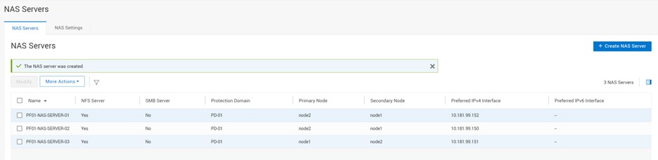 2. For the purpose of illustration, we will create 3 difference NAS servers on 3 different NAS nodes.
